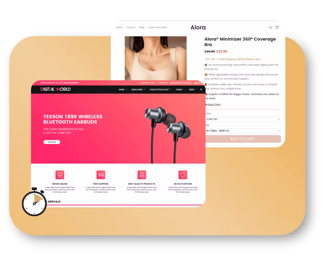 Your store will be fully built and ready in less than 10 minutes! Our AI software does most of the work, including setting up the design, adding popular products, and linking suppliers. All you need to do is follow a few simple steps, and you’re ready to go.